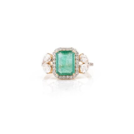 Get this Product in 14KÂ GoldMake a statement with this 18k solid gold cocktail ring, showcasing a natural emerald framed by dazzling diamonds in a bold, glamorous design.