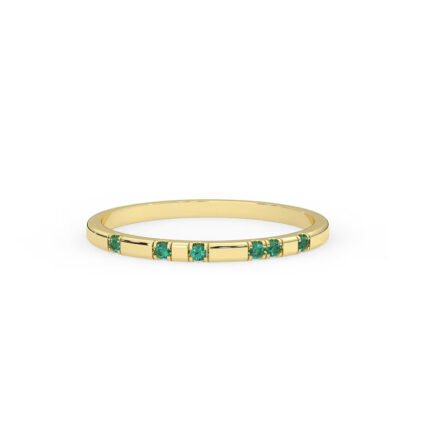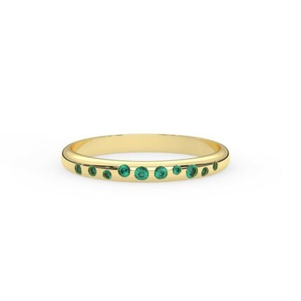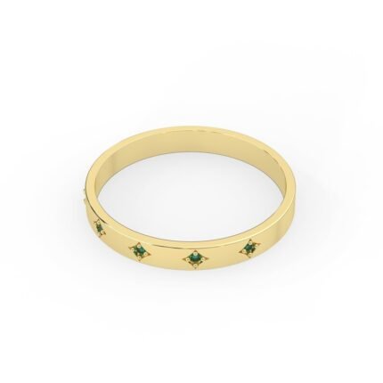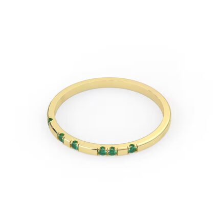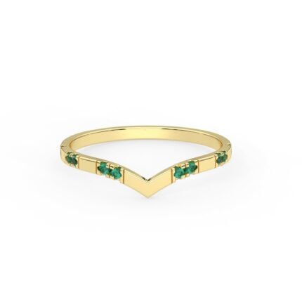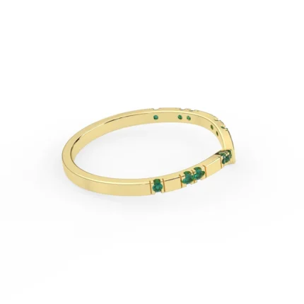 A timeless 18k solid gold wedding band featuring natural emeralds, offering a vibrant and elegant symbol of everlasting love and commitment.