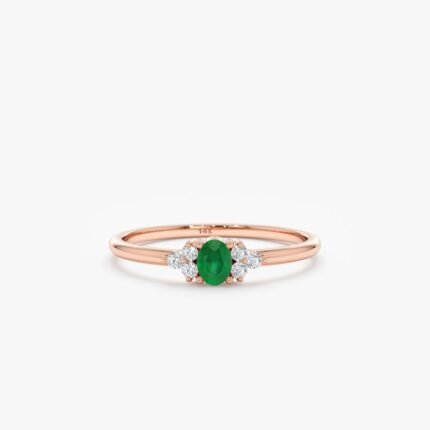 Get this Product in 14K GoldElegant 18k solid gold ring featuring three oval emeralds accented with diamonds—crafted for vibrant sophistication and timeless beauty.
