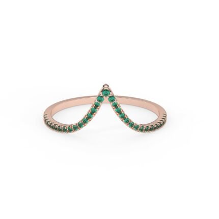Get this Product in 14K GoldElegant 18k solid gold V-shape wedding band with natural emeralds, combining a modern design with vibrant color for a timeless and meaningful piece.