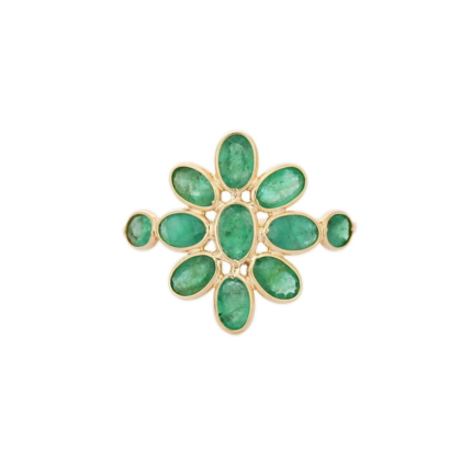Get this Product in 14KÂ GoldCharming 18k solid gold ring designed as a flower, featuring vibrant green emeralds. A graceful piece that blends nature-inspired beauty with elegance.
