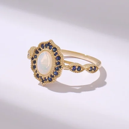 18K Solid Gold Oval White Opal Vintage Engagement Ring