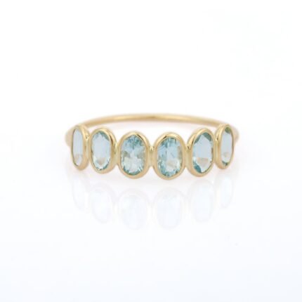 18K Solid Gold Bezel Set Aquamarine Half Eternity Band