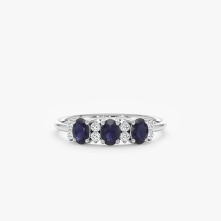 Get this Product in 18K GoldElegant 14K solid gold diamond and oval sapphire ring, featuring a stunning oval sapphire center stone surrounded by brilliant diamonds for a sophisticated, timeless look.