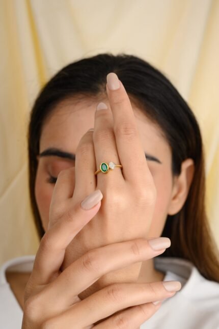 Get this Product in 18K GoldElegant 14K solid gold ring featuring a vivid emerald accented by sparkling diamonds—crafted for timeless sophistication and natural beauty.