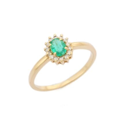 Get this Product in 18K GoldElegant 14K solid gold ring with a vivid green emerald and sparkling diamonds. A timeless piece of luxury and graceful sophistication.