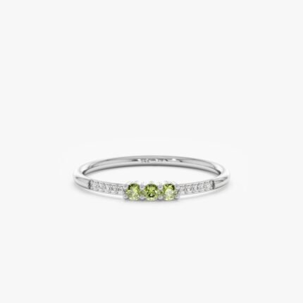 Get this Product in 14KÂ Gold18k gold peridot and diamond ring featuring 0.09 ctw peridot and 0.05 ctw diamonds. GIA certified, dainty everyday elegance.