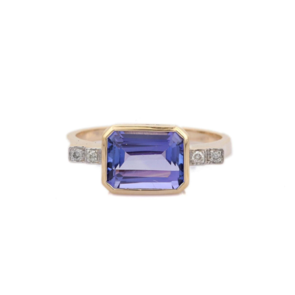 18K Solid Gold Cushion Tanzanite And Diamond Ring