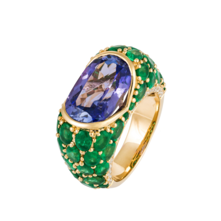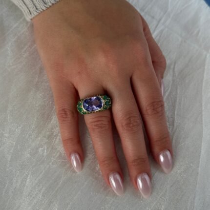 18K Solid Gold Diamond Emerald Tanzanite Ring