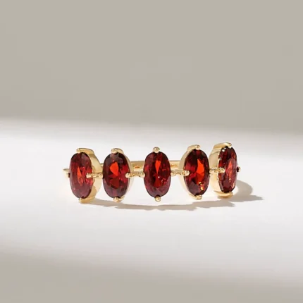 18K Solid Gold 5 Stone Oval Garnet Ring