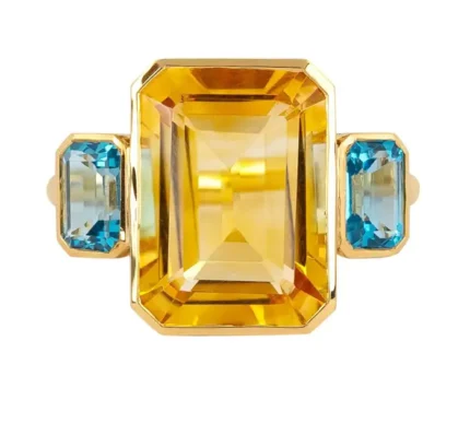 Get this Product in 14K GoldStriking 18k solid gold ring featuring 7.79 carats of blue and yellow topaz in a three-stone design—crafted for vibrant elegance and bold charm.
