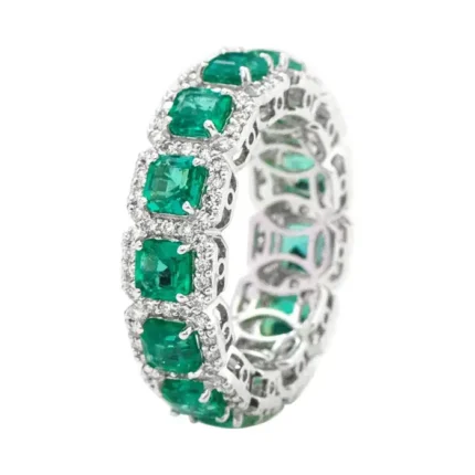 18K Solid Gold Natural Emerald Diamond Eternity Band