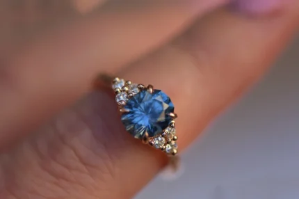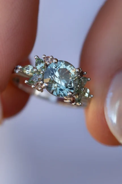 14K Solid Gold Pastel Montana Sapphire Floral Cluster Ring