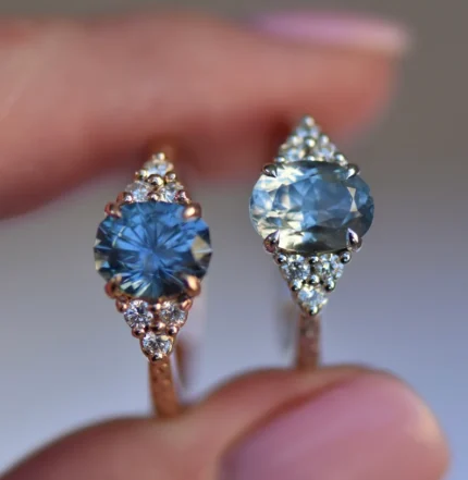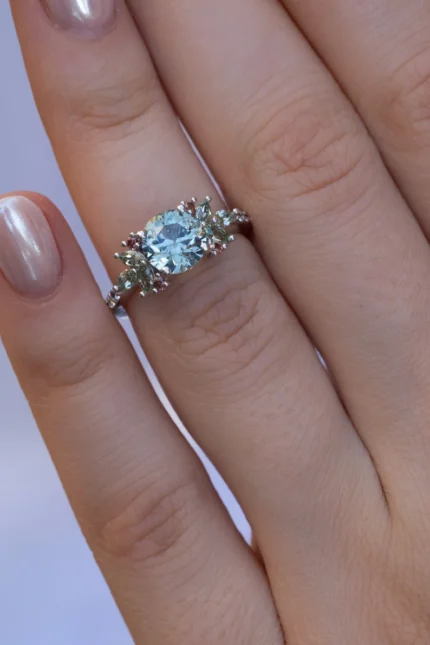 18K Solid Gold Nature Inspired Light Blue Montana Sapphire Diamond Engagement Ring