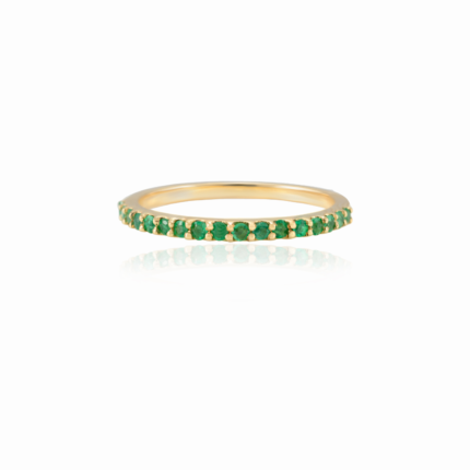 Get this Product in 18K GoldElegant 14K solid gold half eternity band with vibrant green emeralds. A timeless design symbolizing love, balance, and lasting beauty.