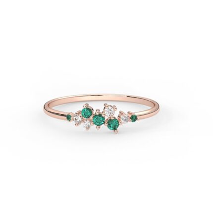 14K Solid Gold 0.18 ctw Cluster Emerald Ring