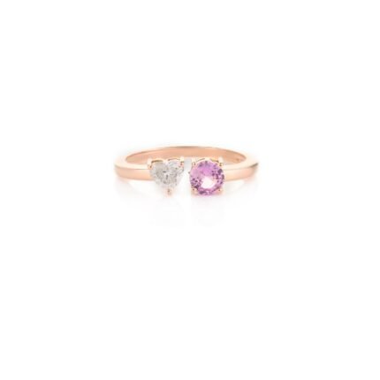 Get this Product in 14K GoldModern and elegant, this 18k solid gold open ring features pink sapphire and diamond accents—perfect for a chic, romantic statement.