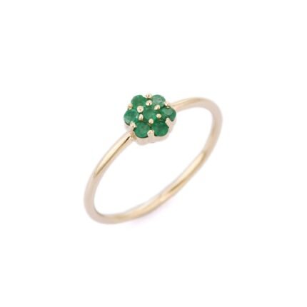Get this Product in 14KÂ GoldCharming 18k solid gold ring designed as a flower, featuring vibrant green emeralds. A graceful piece that blends nature-inspired beauty with elegance.