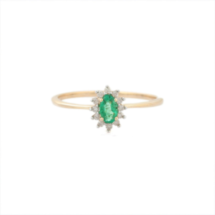 18K Solid Gold Emerald & Diamond Flower Ring