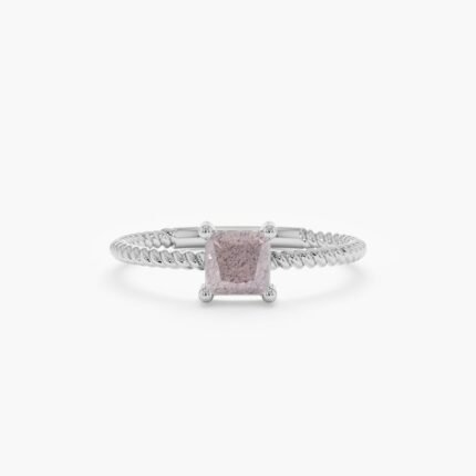 18K Solid Gold Square Rose Quartz Ring