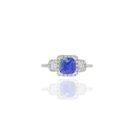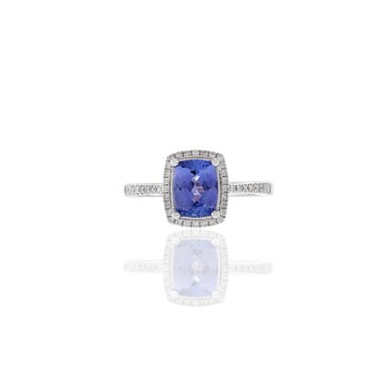 18K Solid Gold Cushion Cut Tanzanite And Diamond Ring