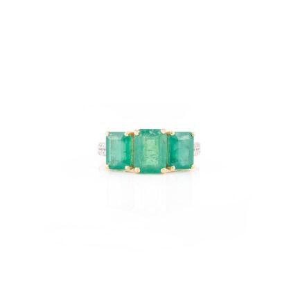 14K Solid Gold Trillion Emerald Diamond Wedding Ring