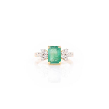 14K Solid Gold Emerald Diamond Wedding Ring