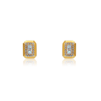 The 14K Gold Diamond White Topaz Emerald Cut Earring features a stunning 0.24 ct emerald-cut white topaz surrounded by 0.08 carats of lab-grown diamonds. Weighing 1.51 grams, this single earring showcases classic elegance with its high-polished finish, perfect for adding a touch of sophistication to any outfit.