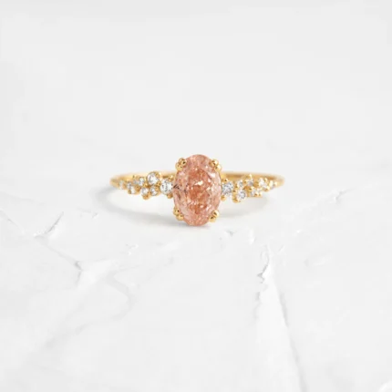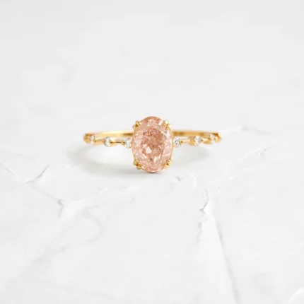 14k Solid Gold 1.16ct. Oval Cut Lab-grown Pink Diamond Engagement Ring