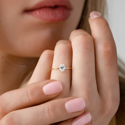 14k Solid Gold 0.9ct. Oval Cut Lab-Grown Diamond Ring
