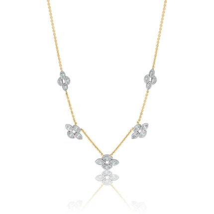 14K Gold Diamond Marquise Clover Spaced Necklace