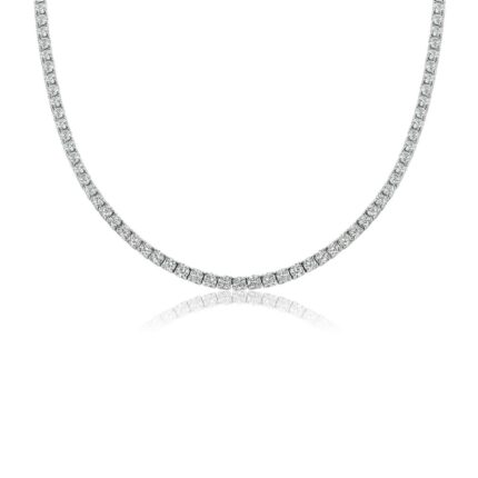 This 18k Gold Lab-Grown Diamond Tennis Necklace features 15.04ct of round-cut diamonds set in a seamless design. Available in white, rose, and yellow gold, it is IGI & BIS hallmarked for quality assurance.