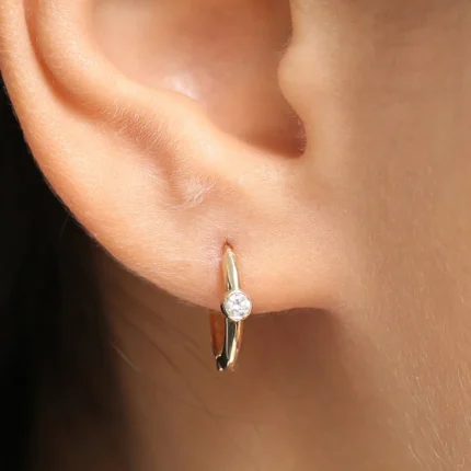 18k Solid Gold Single Bezel Set Diamond Hoops