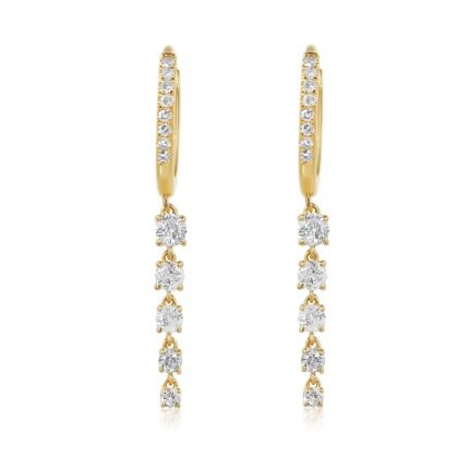 14K Solid Gold Drop Trio Moissanite Diamond Hoop Earring