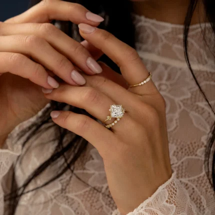 Our 5 CT moissanite engagement rings offer a range of breathtaking designs, from classic solitaires to intricate halo and vintage-inspired settings. Each ring is meticulously crafted to showcase the impressive size and radiance of the moissanite, ensuring it becomes a true statement of your everlasting love.