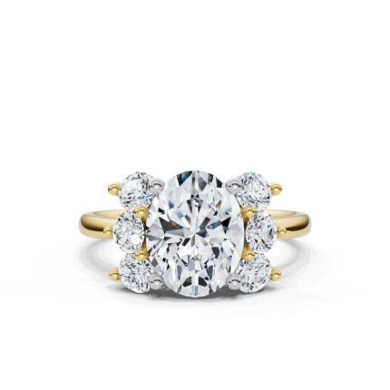 Get this Product in 14k GoldA 2ct oval Moissanite diamond engagement ring in 18k solid gold, featuring 0.36ct of round and marquise diamonds for a sophisticated and timeless look.