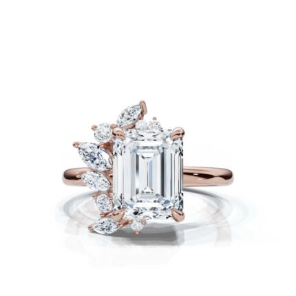 18k Solid Gold Emerald Cut Moissanite Diamond Engagement Ring