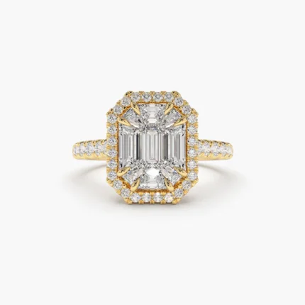 14K Solid Gold Emerald Cut Illusion Halo Setting Moissanite Engagement Ring