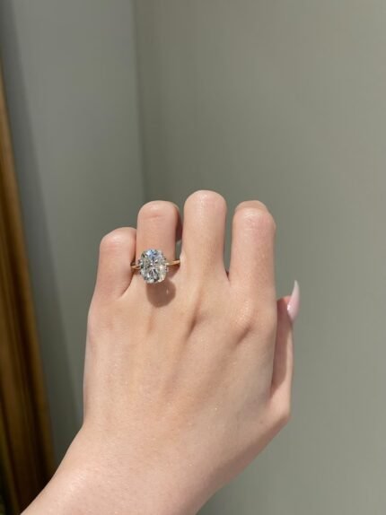 "Elegant 14K Gold Oval Cut 3ct Moissanite Diamond Engagement Ring – a striking design with a 3ct oval Moissanite diamond for a radiant and timeless look."
