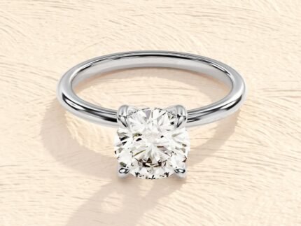 4 Prong Setting Round Cut 2 ct Moissanite Diamond Engagement Ring
