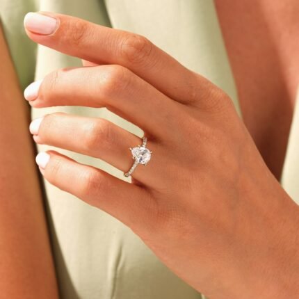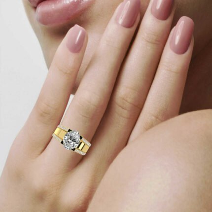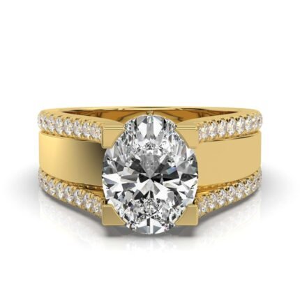 Get this Product in 18K GoldA stunning 2ct oval Moissanite diamond engagement ring in 14K solid gold, featuring four sparkling side diamonds. A timeless and elegant symbol of love.