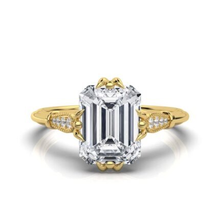 Get this Product in 18K GoldA 2ct emerald-cut moissanite diamond engagement ring with 8 accent stones set in 14K solid gold. Available in white, rose, and yellow gold.