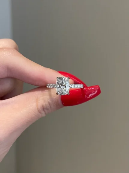 This 7 carat radiant cut moissanite engagement ring dazzles with exceptional brilliance—crafted for women who adore bold beauty and timeless sophistication.