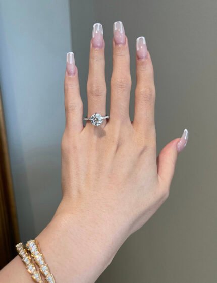 Get this Product in 18K GoldThis 2 carat brilliant round moissanite engagement ring features stunning brilliance and a timeless design—perfect for a heartfelt and elegant proposal.