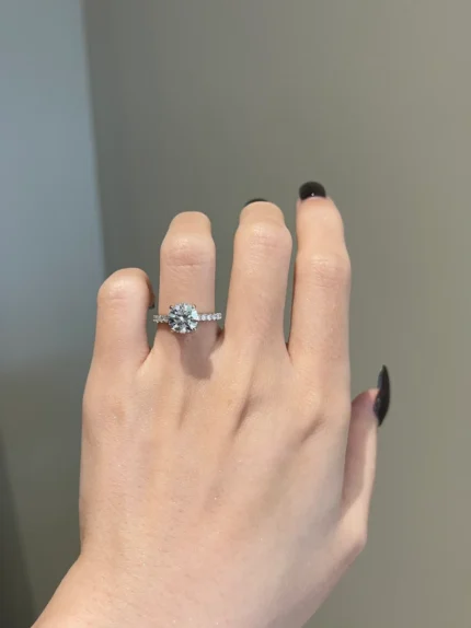 "Elegant 14K Solid Gold 1.5 Carat Brilliant Round Moissanite Diamond Engagement Ring – a stunning 1.5-carat round Moissanite diamond set in solid gold, perfect for a sophisticated, radiant touch."