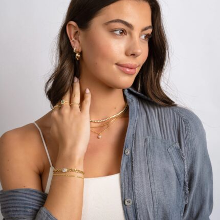A sleek 18K gold arrow bracelet set with baguette natural diamonds—minimal, modern and made to shine every day.