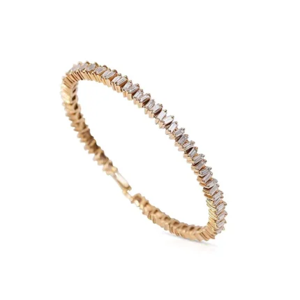 The 14K Gold Diamond Baguette Picket Bangle is a refined and elegant accessory, crafted from 14K solid gold with a gold weight of 22-25 grams.