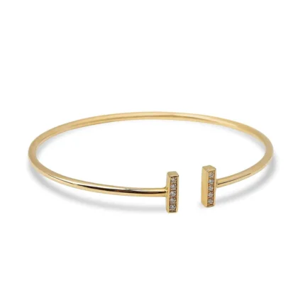 The 14K Gold Diamond Bar Cuff is a sleek and modern piece, available in white, rose, and yellow gold. It is BIS Hallmarked for authenticity, ensuring quality and craftsmanship. This elegant cuff is shipped within 10-12 business days, with customer support available via live chats and video calls for assistance.