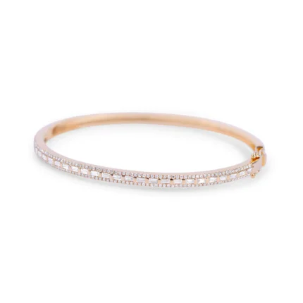 18K Solid Gold Half Eternity Baguette and Round Diamond Bangle