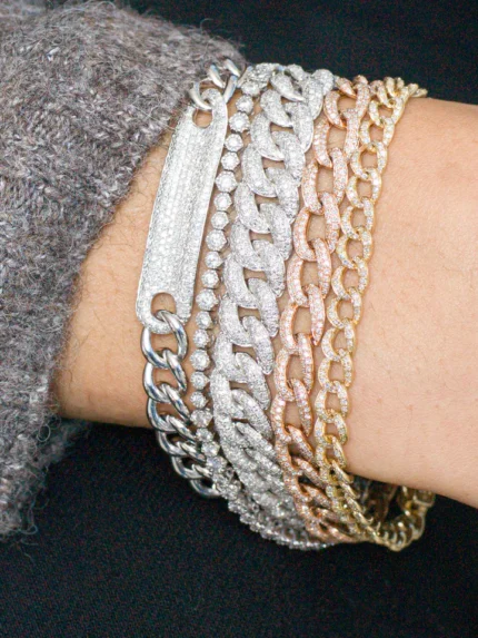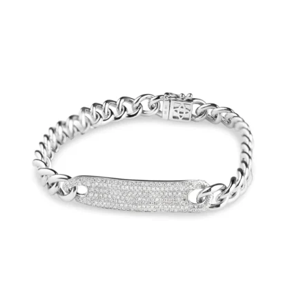 A bold 18K solid gold chain link ID bracelet, finished with 305 natural diamonds for a refined, high-shine statement.